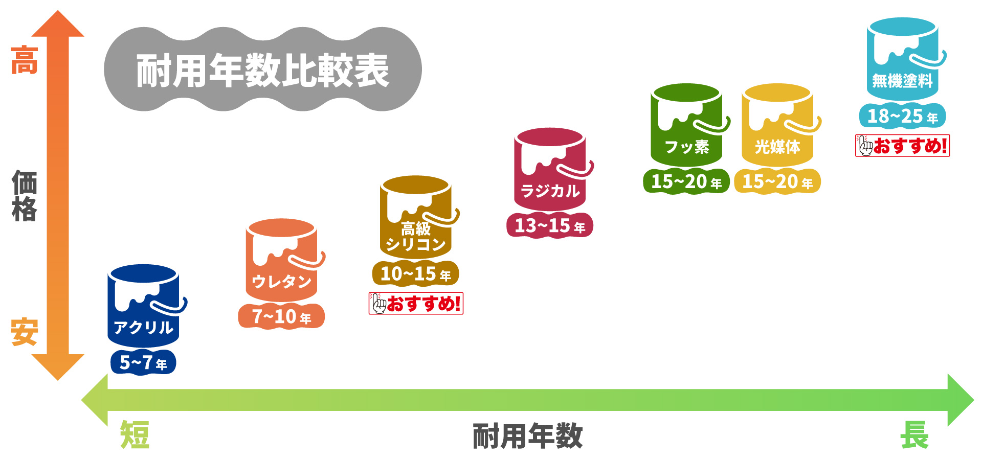自宅の立地や環境(北側の湿気、日当たり、風雨)に適した塗料を選ぶことが重要です。