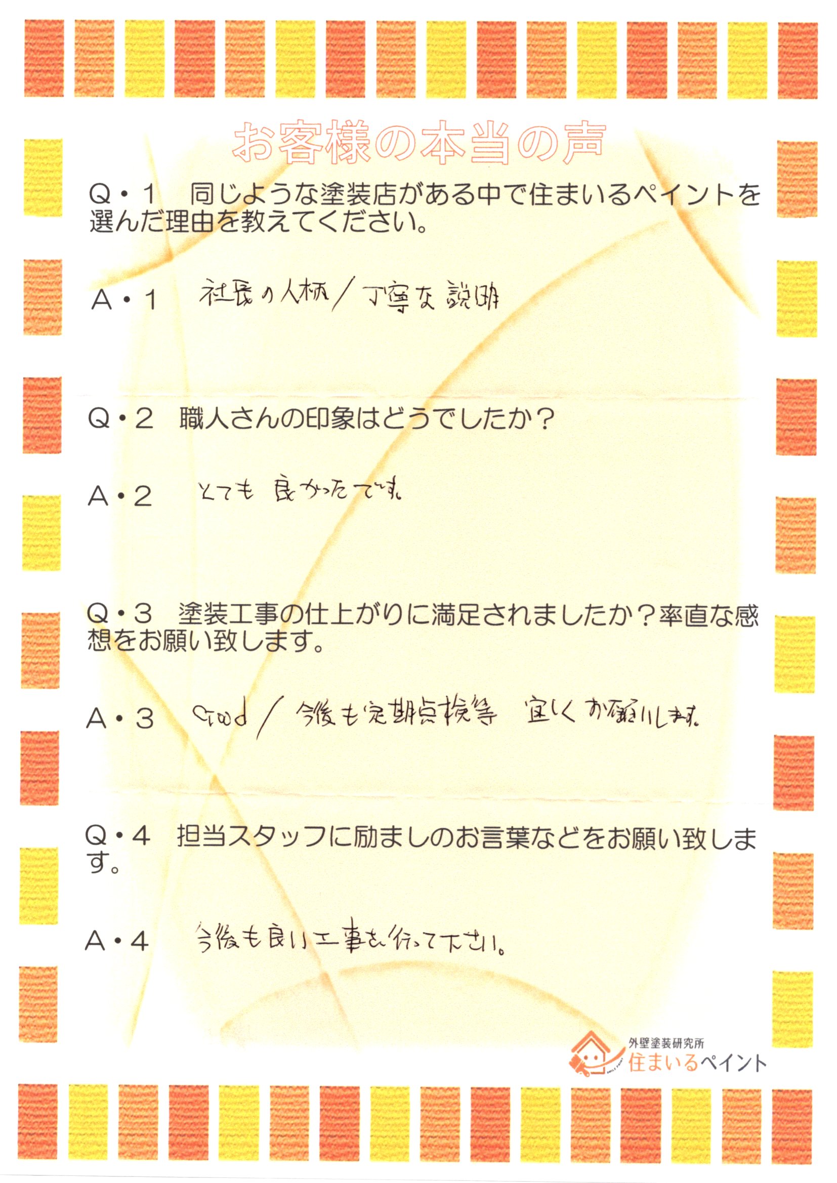 塗装工事の仕上がりに満足されましたか?率直な感想をお願い致します。