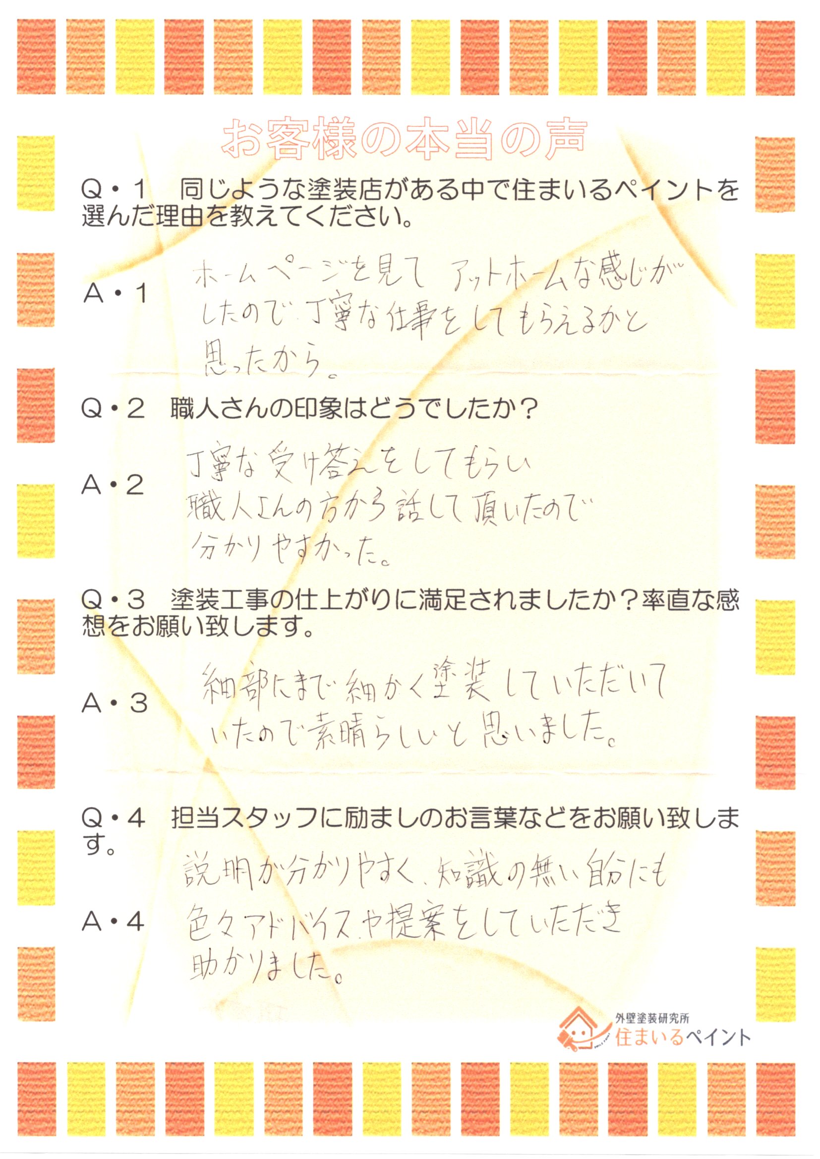 同じような塗装店がある中で住まいるペイントを選んだ理由を教えてください。