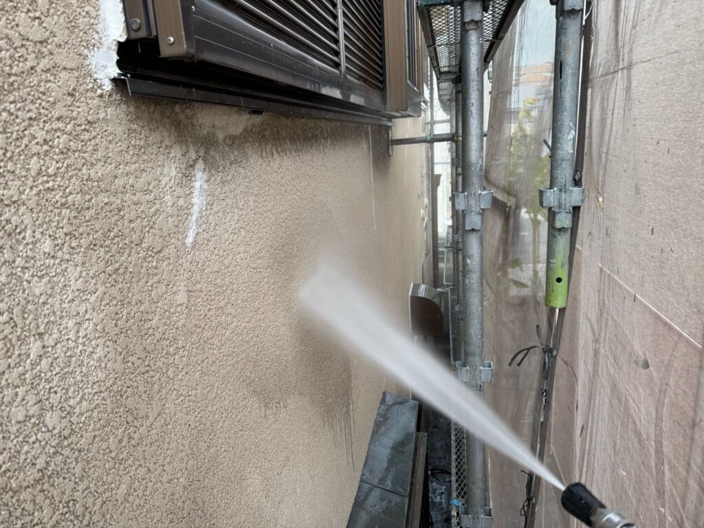 高圧洗浄で、外壁や屋根に付着した汚れを洗い流します。