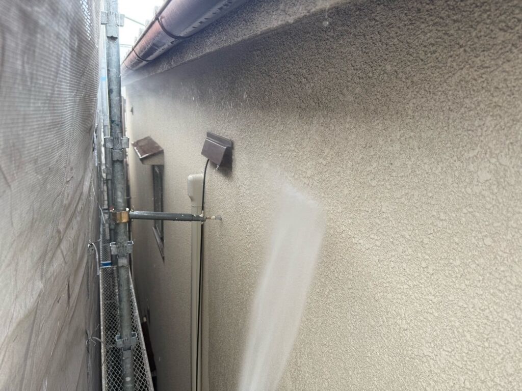 高圧洗浄で、外壁や屋根に付着した汚れを洗い流します。