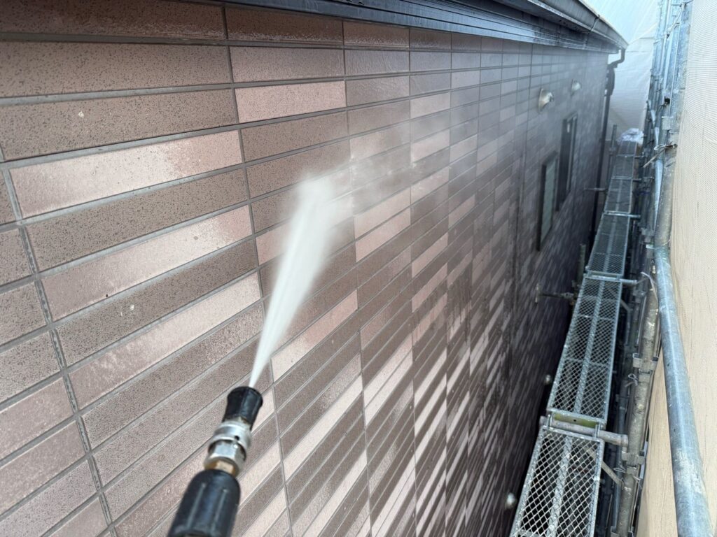 高圧洗浄で、外壁や屋根に付着した汚れを洗い流します。