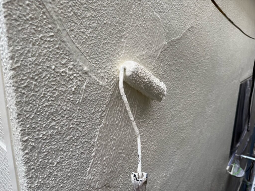 下塗り材は接着剤の役割を果たすだけではなく、劣化し傷んだ下地の中に浸透し補修してくれる下地作りの意味合いもあるので丁寧に塗っていきます。